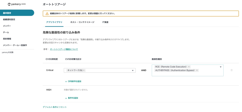 本機能により、アプリケーションからインフラまで、組織独自のリスク評価基準をyamoryの自動判定ロジックに反映させることが可能となり、セキュリティ運用の効率化とガバナンス強化を同時に実現します。