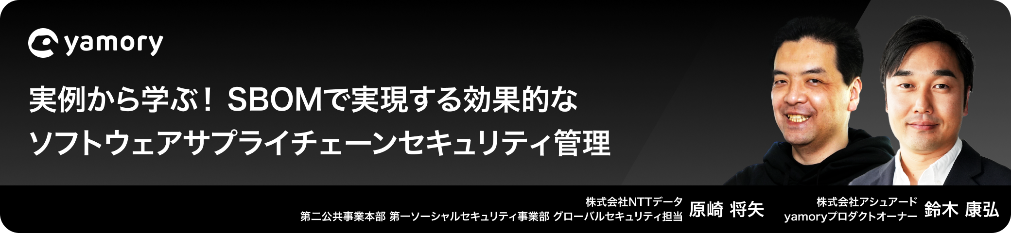本セミナーでは、NTTデータ社の原崎様をお招きし、SBOM導入の意義や最新動向・NTTデータ社の取り組みについてご講演いただくとともに、yamoryを活用した効果的なSBOM管理・運用の実践方法をご紹介します。